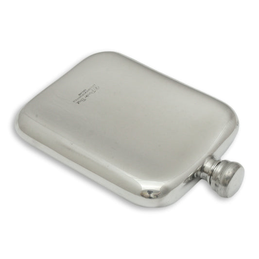 Hip Flask English Pewter Kidney Shaped With Engraving