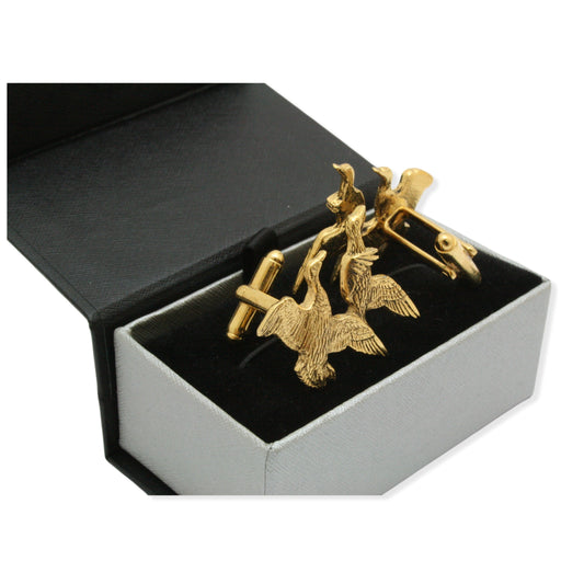Gold Plated Game Shooter Cufflinks & Tie Clip Set