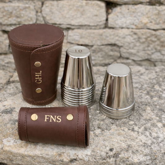 Personalised 4oz Stacking Steel Stirrup Cups In Leather Case (4 or 1-10 cups)