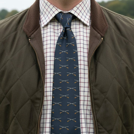 Crossed Shotguns Tie Shooting Necktie In Blue Red Green or Brown