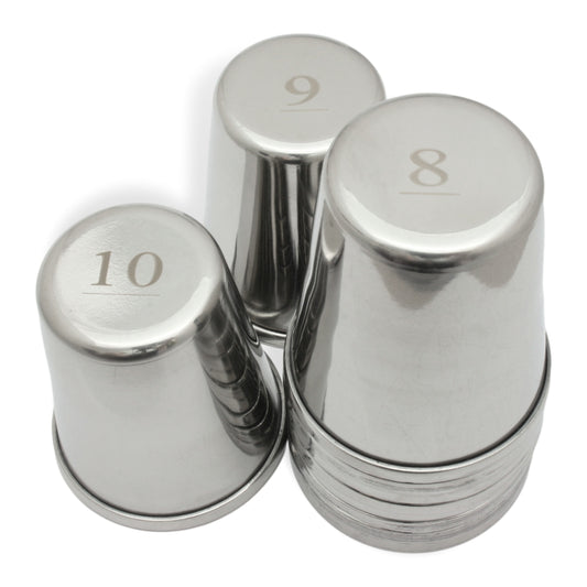 12 or 8 Oz Set of 10 Stacking Stainless Steel Beaker Stirrup Cups