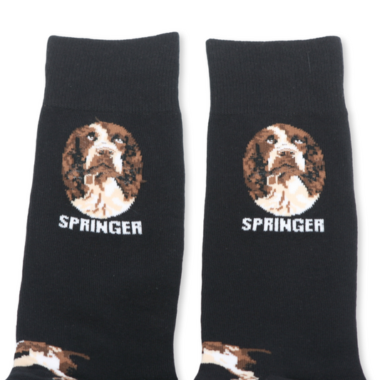 Springer Spaniel Dog Cotton Socks in Black – Unisex Sizes 6-11