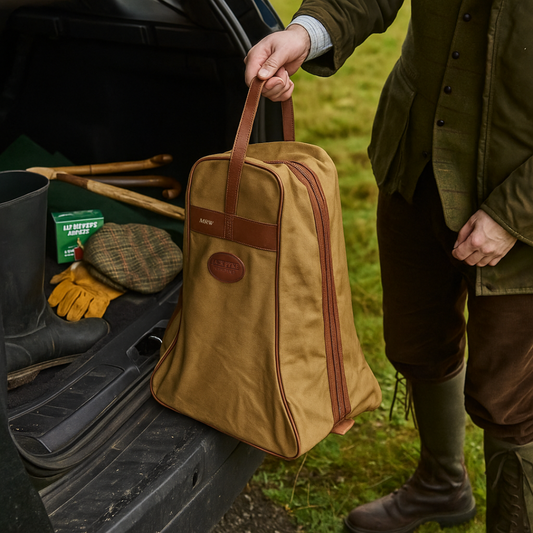Personalised Canvas Welly Bag Heavy Duty Boot Bag with Embossed Initials