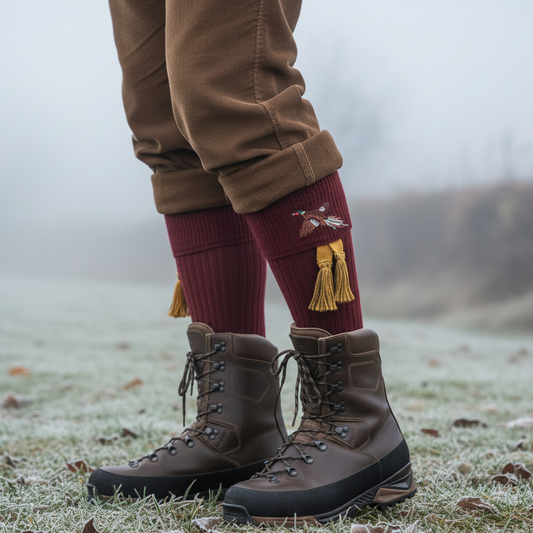Pheasant Shooting Socks with Garters Size 8-11 Green or Red