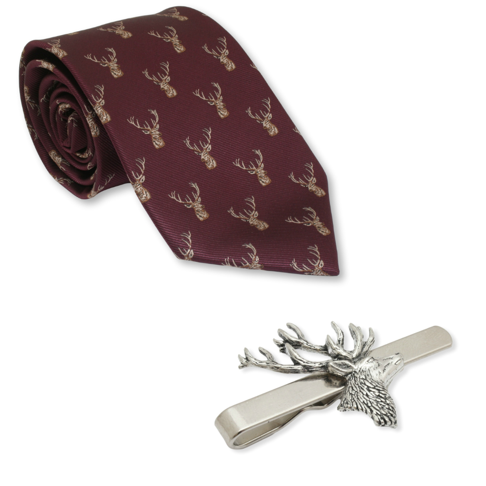 Red Stag Head Tie Maroon Mens Hunting Necktie