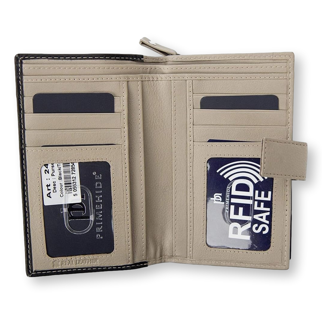 The purse is RFID safe, protecting your cards from being easily scanned.