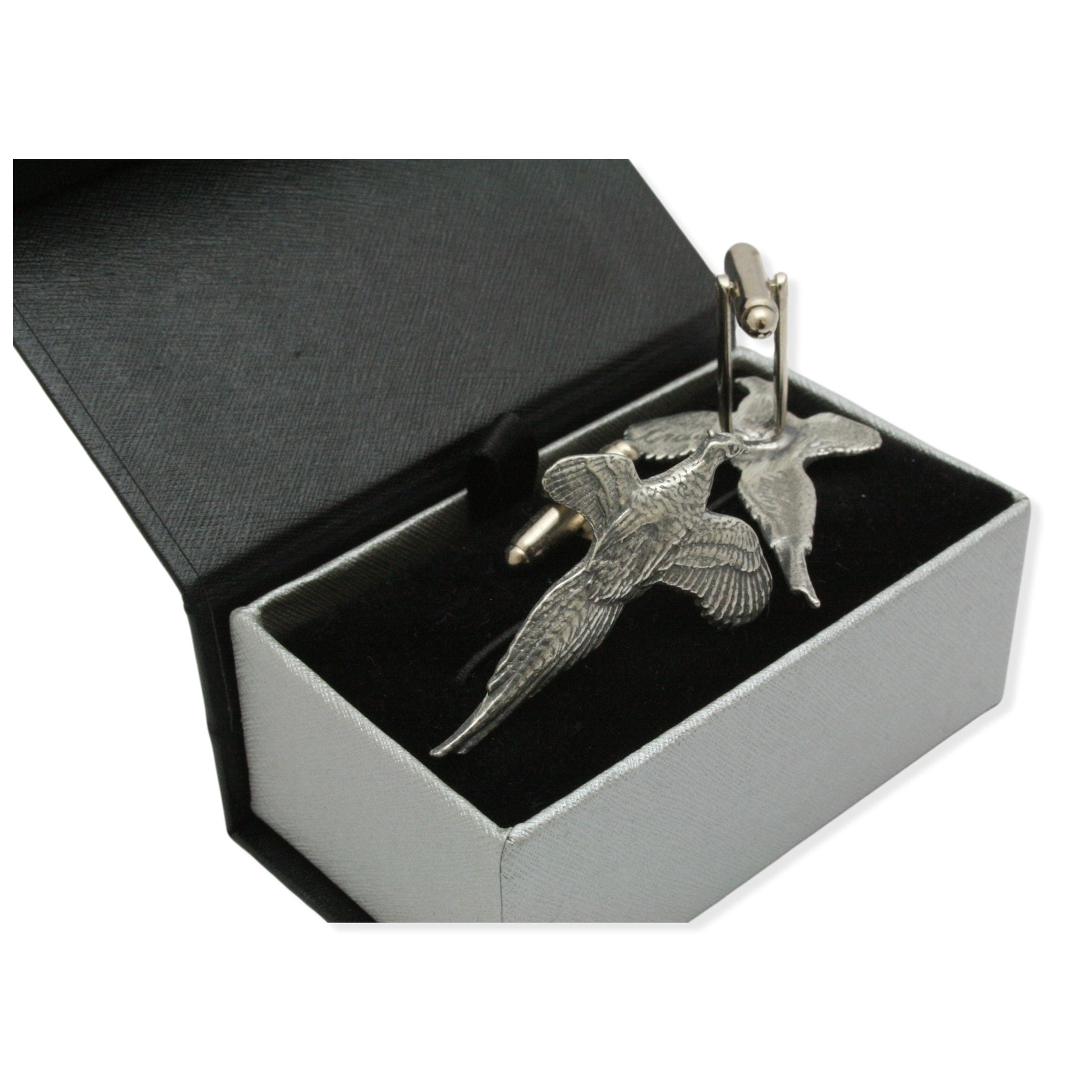 Pheasant English Pewter Cufflinks Set In Box