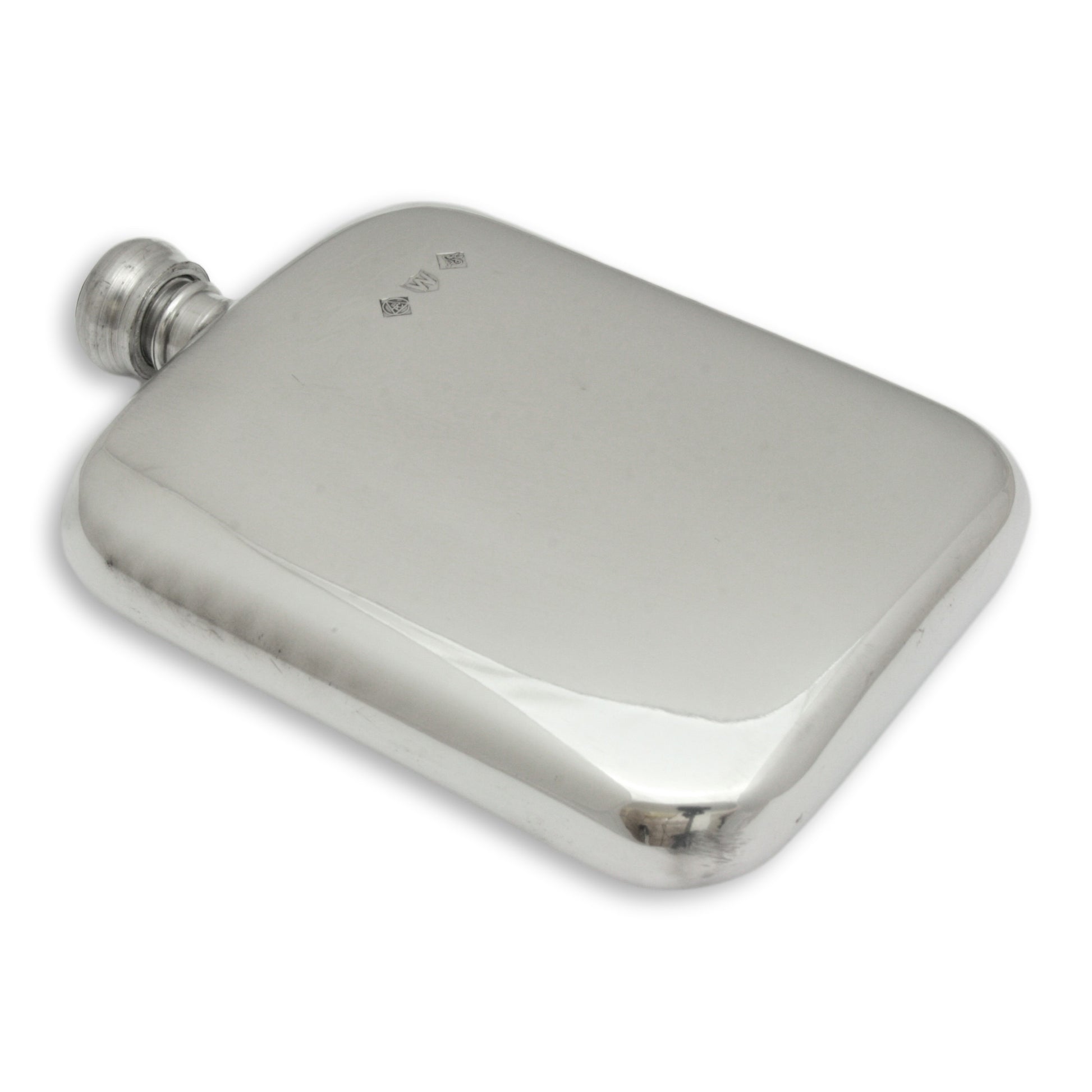 - English Pewter Hip Flask: Kidney-shaped, 6 fl oz capacity, perfect for on-the-go.